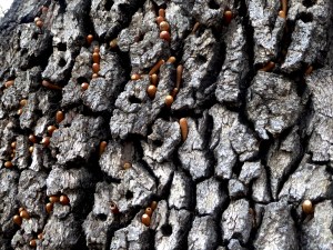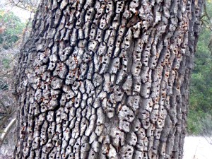 Signs of life abound in this oak dominated canyon that features a seasonal creek running through it. Ravens, deer, coyotes, and even mountain lions make appearances here. This oak tree is an “acorn granary” for woodpeckers. The granary is a community resource, and the trees chosen vary from year to year, as the … Continue reading